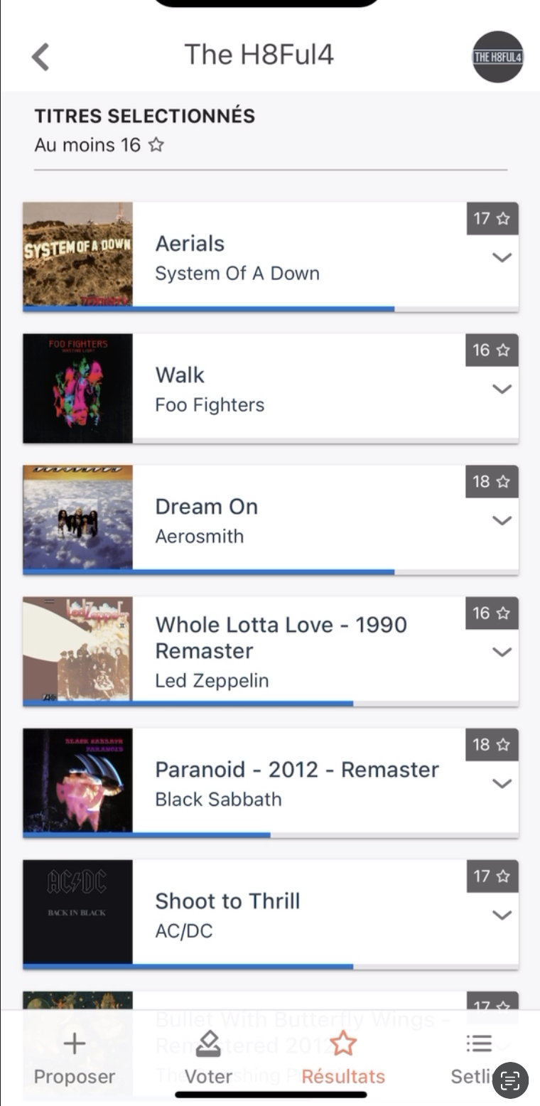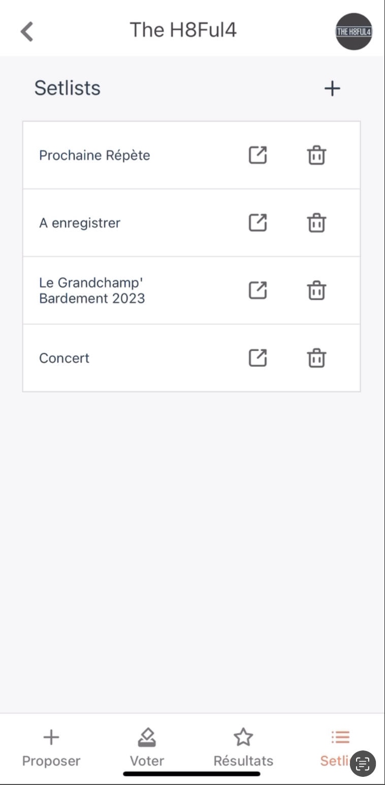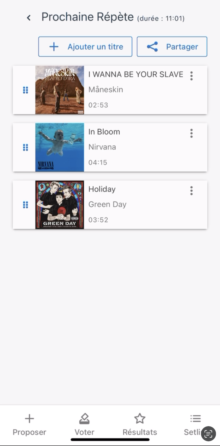 Application permettant au groupe de musique de proposer aux autres membres des musiques à jouer.