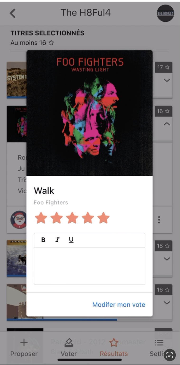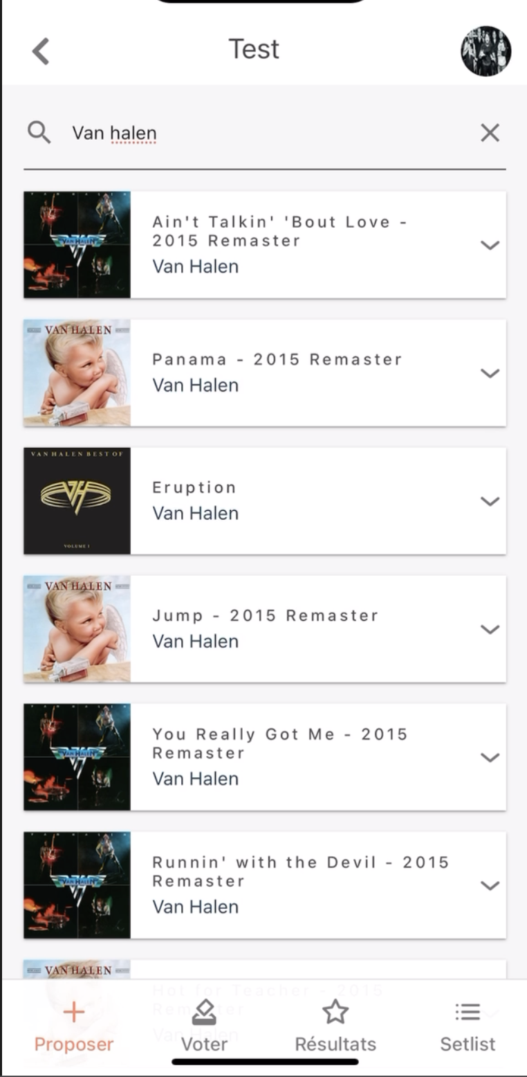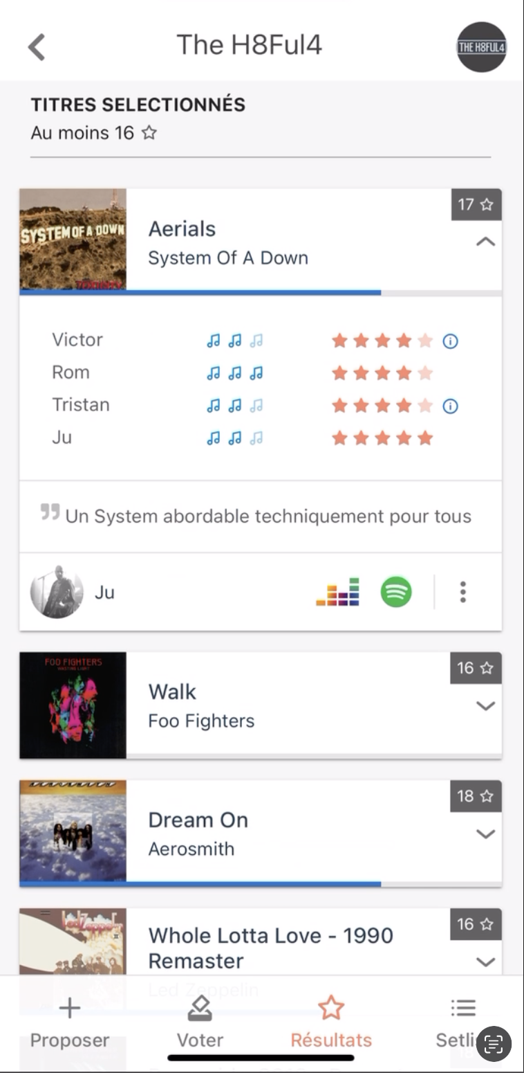 Application permettant au groupe de musique de proposer aux autres membres des musiques à jouer.