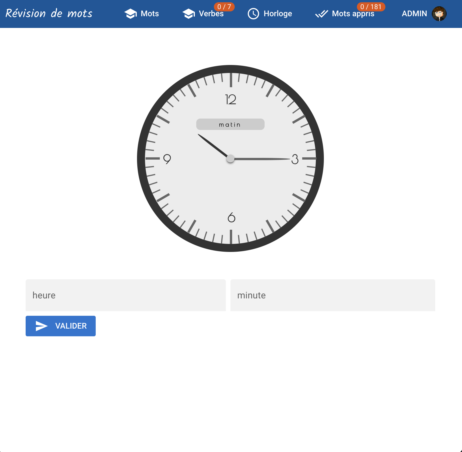 Application d'aide pour l'apprentissage d'éléve du primaire : dictée, heure, conjugaison