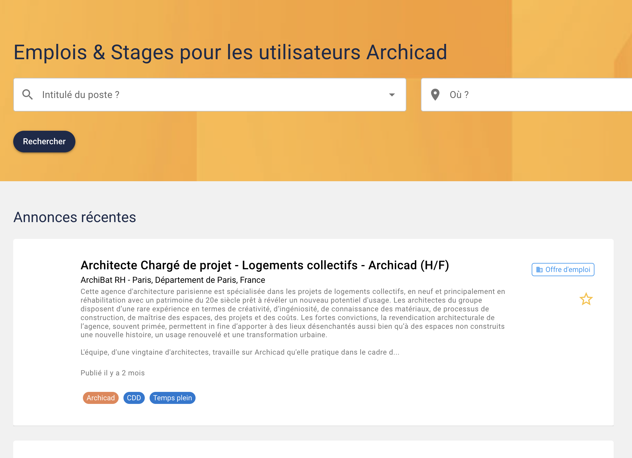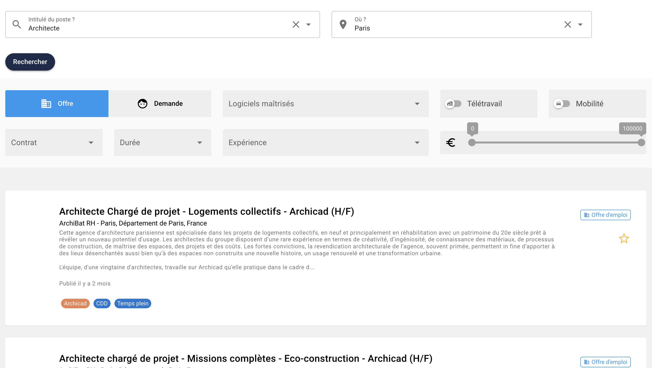 Site d'offre d'emploi dédié aux métiers de l'architecture